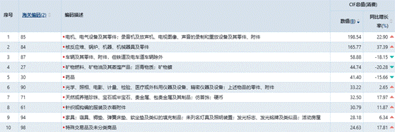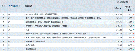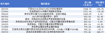 图14 2025年1-12月份美国进口TOP10商品情况