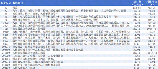 “光学及医疗仪器”进口额49.18亿美元,同比下降3.21%。其中,“矫形器具”同比下降11.54%;“其他人造人体部分”同比下降16.61%。然而,“机械疗法器具”同比增长19.37%;其中“治疗器及人工呼吸器”同比增长18.58%。这表明美国对康复及呼吸类医疗设备的需求保持增长,而对矫形及植入类器具的需求收缩,反映出不同医疗领域的进口替代或需求变动存在差异。(如图6)