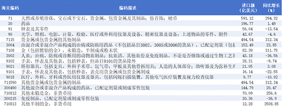 “贵金属及其制品”进口额1521.3亿美元,同比增长67.60%,其中“其他贵金属制品”增速更是高达265.63%。这与信息与通用技术(ICT)产品的产业逻辑不同,贵金属的增长更多反映了实物资产的避险需求或金融性流动,属于独立于实体经济之外的变量。与此同时,生物医药领域出现了结构性转移,虽然“药品”行业微降0.33%,但“有机化学品”行业中“其他多肽等激素及其衍生物”同比却大幅增长248.37%,显示出美国生物医药供应链正在调整,从直接进口成品药转向进口高价值的原料及中间体进行本土加工。(如图11-13)